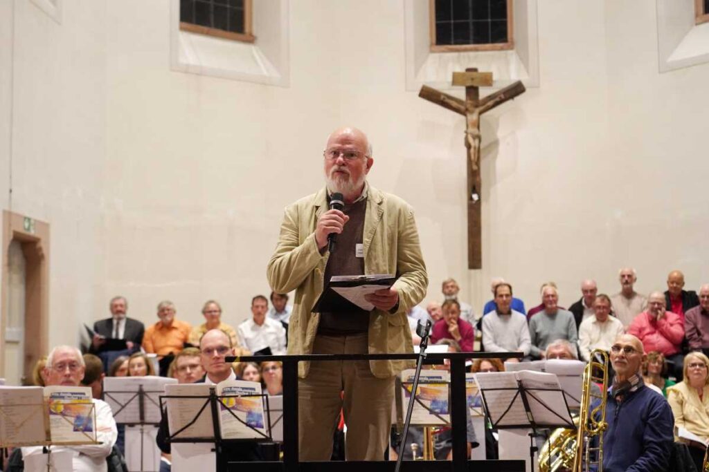 Nomen est Omen, so schreibt Karin Bürk in ihrem Bericht vom 29. September 2024 zu einem Chorkonzert zum Mitsingen in der Friedenskirche in Kehl. Eingeladen hatten die Bezirkskantorate der Ortenau und der französische Service Musique der UEPAL. Die Teilnehmenden der Straßburger Gespräche 2024 nahmen dies gerne zum Anlass für einen Ausflug über die Grenze.